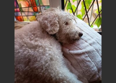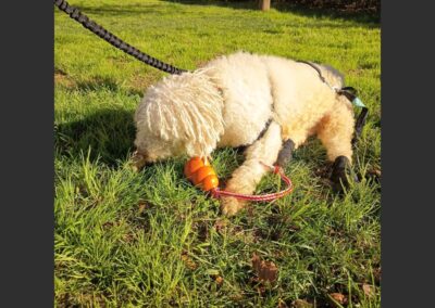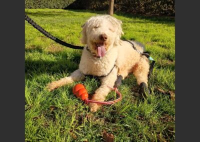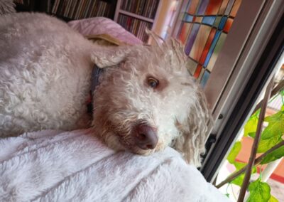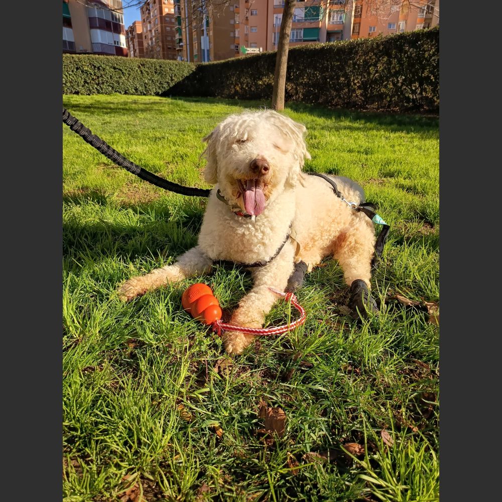Hay perros que parece que la mala suerte les persigue. Tommy nos lo cedieron con un año y poquito porque le había pillado un trastor y la familia no lo quería. A consecuencia de eso, las patas traseras no las mueve, pero tamaño las arrastra. Anda como un conejito.